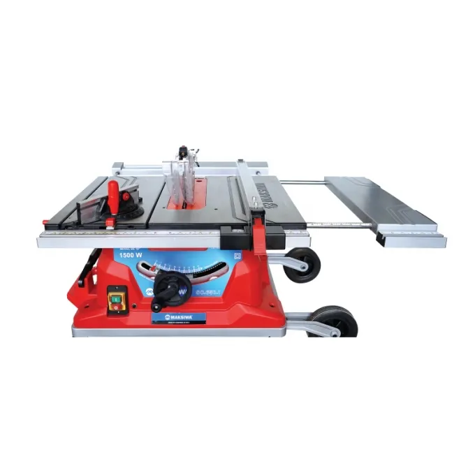 A Serra de Bancada SC.650.I MAKSIWA foi projetada para trabalhar com lâminas de 254 mm (10) podendo cortar madeira e acrílico (devendo apenas usa a lâmina adequada para cada serviço). Motor de 1500W - Alta potência para todas as aplicações. Inclinação de Serra - 0º a 45º. Profundidade Máxima de Corte - 80 mm. Guia de Alumínio de Aperto Rápido - Garantindo agilidade e precisão. Linha de Corte a Laser - Adicionando precisão e segurança. Mesa Deslizante - Oferece a função de esquadrejar cortes retos ou em ângulo. Conveniência - Pernas reguláveis e rodas de movimentação. Espaço e Firmeza - Mesa fundida e prolongadores telescópicos. 1 Ano de Garantia MAKSIWA.