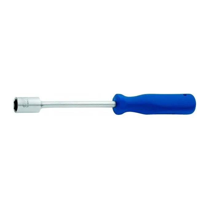 Haste em Aço Gedore-Vanadium e cabo em polímero na cor azul padrão Gedore. Haste com acabamento niquelado e cromado. Chave com perfil de encaixe para parafuso com sextavado externo e cabo ergonômico. Indicada para eletro-eletrônica e mecânica leve, principalmente em locais de difícil acesso.